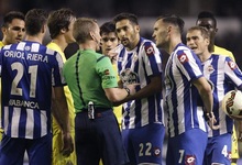Los jugadores del Deportivo protestan una decisión al árbitro Hernández Hernández. | EFE