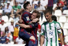 Luis Suárez (3), Messi (2), Rakitic, Piqué y Neymar de penalti marcaron para el Barcelona. El Córdoba ya es matemáticamente equipo de Segunda.