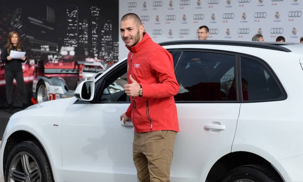 Karim Benzema posa delante de su Audi. | Cordon Press/Archivo