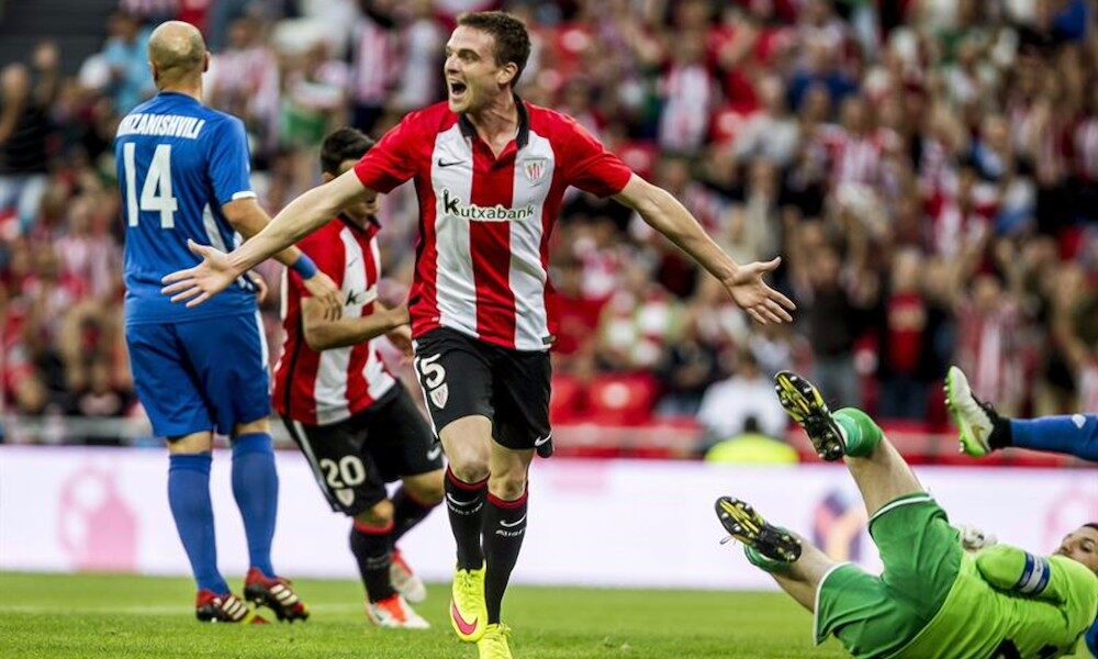 El navarro no olvidará jamás este 30 de julio de 2015, ya que no solo debutó en el equipo en cuya cantera creció y al que ha regresado este verano tras completar su formación en el Leganés, sino que marcó los dos goles que aseguran al Athletic buena parte del billete a la segunda ronda.