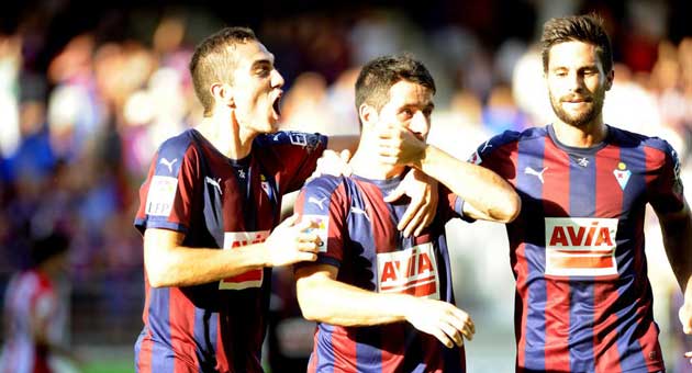SD Eibar, 2: Riesgo; Capa, Dos Santos, Ramis, Antonio Luna; Escalante, Dani García; Keko Gontán, Adrián (Arruabarrena, m. 77), Saúl Berjón (Juncá, m. 74); y Sergi Enrich (Borja Bastón, m. 83).