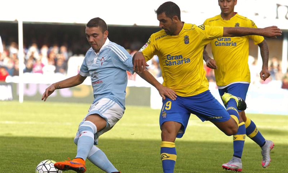 Cierto es que Las Palmas también pudo adelantarse en su primera aproximación, pero el disparo de Roque Mesa, tras una buena asistencia de Araujo, se marchó por encima del larguero. Dos minutos después, en el diez, el Celta sacó petróleo de un pase en largo de Fontás hacia Aspas.