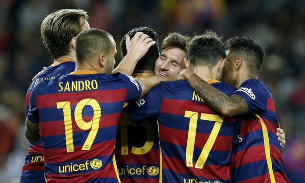 Barcelona, 4: Ter Stegen; Alves, Bartra, Mascherano, Adriano; Busquets (Gumbau, 61), Rakitic, Messi; Munir, Sandro y Neymar.