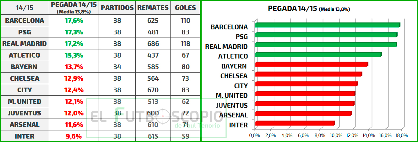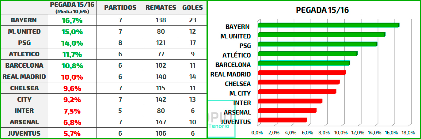 Con respecto al año pasado, hay un descenso de un 7%. Con Ancelotti el Madrid llegaba mucho menos a puerta, pero mataba más, un 17% de eficacia.