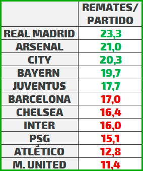 Si nos atenemos a las estadísticas, y según recoge la web www.elfutboscopio.com, sin duda no podemos afirmar tal cosa. El Real Madrid es el equipo de Europa que más tira a puerta por partido.