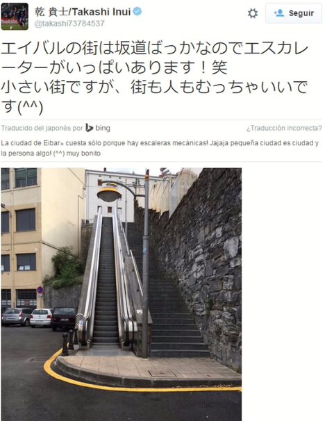 Muestra curiosidad por todo lo que le rodea, y una de las cosas que más le llamaron la atención, fueron las escaleras mecánicas situadas en pleno centro eibarrés.