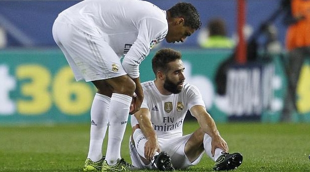 Dani Carvajal se vio obligado a abandonar el terreno de juego en la recta final de la primera parte del derbi ante el Atlético de Madrid en el Vicente Calderón tras sufrir una lesión en el tobillo derecho. El lateral madridista hizo ver a los médicos blancos que no podía seguir en el partido y en su lugar entró Álvaro Arbeloa.