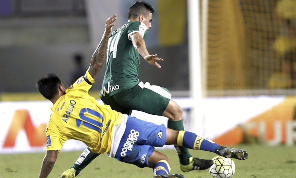 Las Palmas solo jugó al ritmo de Jónathan Viera. Un pase suyo a Araujo lo enganchó de volea el argentino desde lejos y el balón pasó muy cerca del poste izquierdo de Riesgo.
