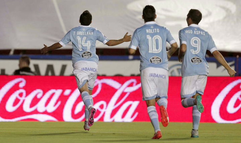 Los tres mosqueteros -Iago Aspas, Nolito y Orellana-, son un incordio para cualquier defensa. Además de asociarse con precisión, los tres tienen la capacidad para cambiar de posición con facilidad, moviéndose por todo el frente del ataque, incluso pueden juntarse los tres en un determinado flanco para generar ventajas sobre la defensa rival. Si a esto añadimos que los tres tienen bastante gol y ayudan, y mucho, en tareas defensivas, el resultado arroja un tridente de muchísimos quilates.