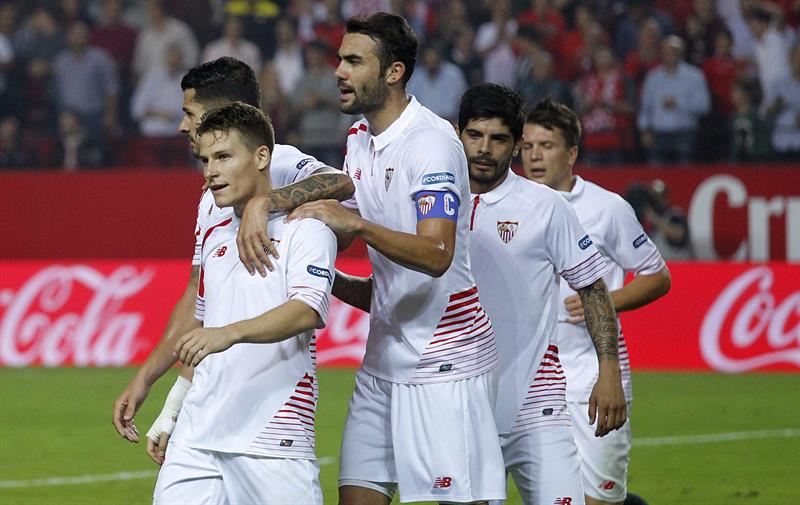 Sevilla, 5: Sergio Rico; Mariano, Rami, Kolodziejczak, Tremoulinas; Krychowiak, Iborra (N'Zonzi, m.61); Vitolo, Éver Banega (Krohn-Dehli, m.65), Konoplyanka; y Gameiro (Llorente, m.70)