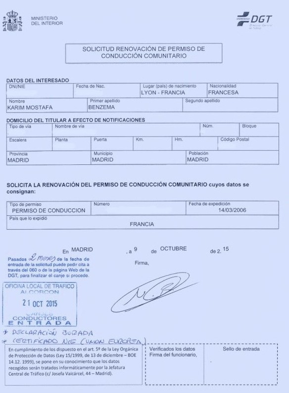 La policía no aceptó dicho documento y denunció al jugador del Real Madrid por conducir sin permiso.