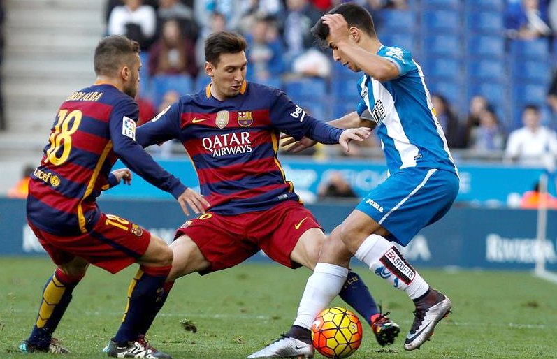 El equipo de Luis Enrique tuvo más y mejores ocasiones, pero le faltó acierto ante la portería rival. Así, Messi y Luis Suárez se estrellaron contra los palos, mientras que Neymar, uno de los jugadores más activos esta tarde, lo intentó con un remate de media chilena atrapado por Pau López. El equipo blanquiazul, en el cuarto partido de Constantin Galca en el banquillo, ha demostrado así cómo se puede frenar al poderoso Barça, en el primero de los tres duelos entre ambos equipos en poco más de diez días, pues pericos y culés volverán a medirse la próxima semana y la siguiente en los octavos de final de la Copa del Rey, con el partido ida el Día de Reyes en el Camp Nou.
