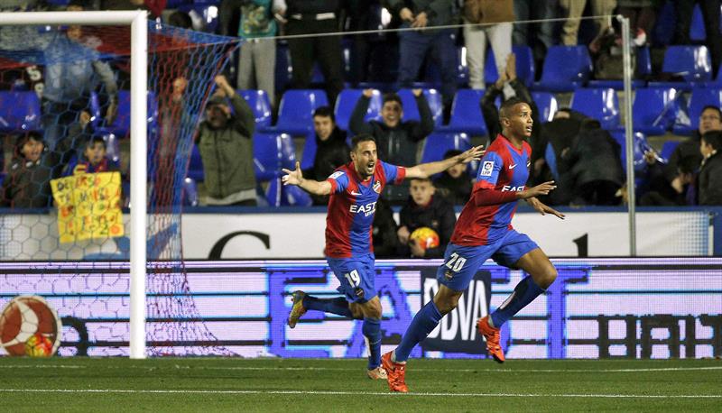 Pero fue la insistencia del Levante la que obtuvo premio a los 72 minutos de partido. Un minuto después de que Yoel protagonizase una gran parada tras un cabezazo de Feddal, Deyvseron adelantaba al equipo valenciano con un gran remate de volea a pase de Toño.