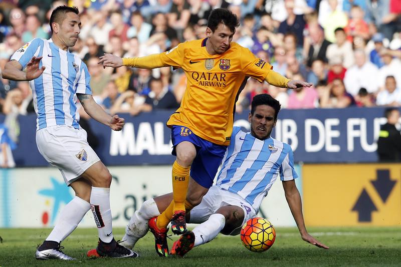 Siguió a pesar de todo creyendo el Málaga, con las ideas intactas en la cabeza pero las piernas mucho más cansadas. Las subidas del Chory Castro, por la izquierda, y de Rosales, lateral de larguísimo recorrido, por la derecha, no dejaron de llegar. El uruguayo y el venezolano hicieron trabajar en no pocas ocasiones a Bravo, pero quien realmente estuvo más cerca en la segunda parte del gol fue el Barcelona, aunque Camacho rozara el empate en el 73, en lo que hubiera sido un broche de oro a un partido pluscuamperfecto del ex centrocampista del Atlético de Madrid. Pero, con Messi más activo en la reanudación, y una vez más letal en la finalización, el Barcelona sacó tres puntos de oro en un partido donde quizá no los mereció, como reconoció el propio Luis Enrique en la rueda de prensa. A los catalanes no les sobró brillo, al inicio hasta les faltó seguridad y se les acumularon las imprecisiones, pero una vez más Messi no faltó a su cita y espoleó a su equipo al liderato, en espera de lo que haga el Atlético de Madrid.