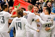Los jugadores del Real Madrid celebran el primero de los dos goles de Cristiano Ronaldo. | EFE