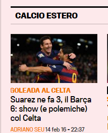 La prensa italiana ve polémica en el penalti, alegando que Suárez se encuentra dentro del área cuando Messi golpea el balón.