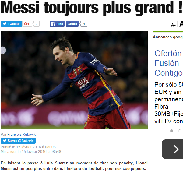La prensa francesa opina que Messi da "un paso más, dentro de la historia del fútbol"