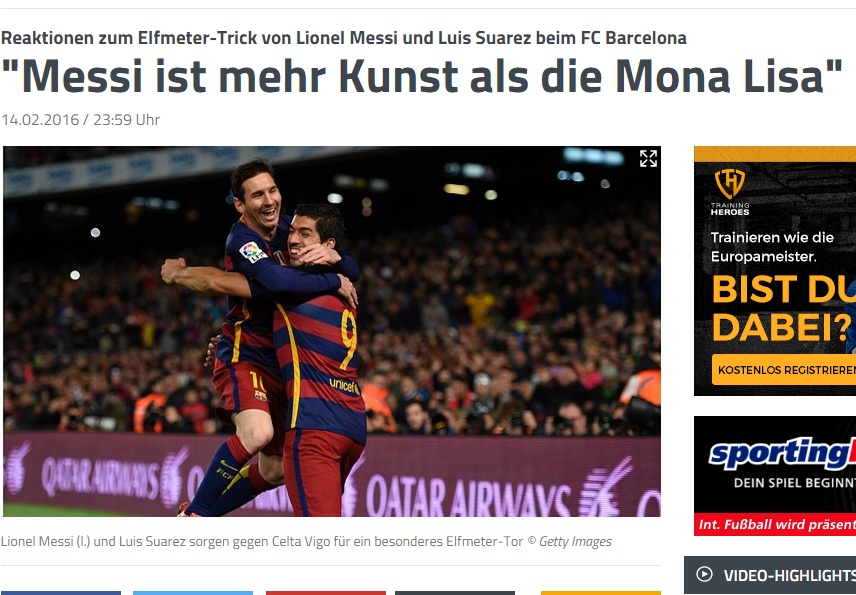 La prensa alemana alaba la acción del argentino titulando "Messi tiene más arte que la Mona Lisa"