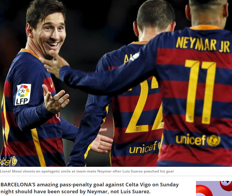 Parte de la prensa inglesa no comparte que el regalo de Messi fuera destinado a Suárez y defiende que tenía que haber ido dirigido a la emergente estrella del Barça, Neymar JR
