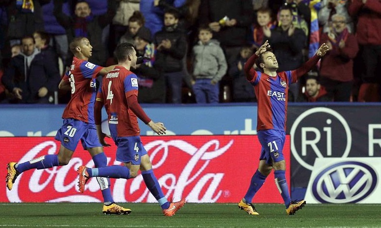 Levante UD, 3: Mariño; Lerma, Navarro, Medjani, Toño; Simao, Verza, Verdú; Morales (Cuero, m.86), Deyverson (Camarasa, m.46) y Rossi (Casadesús, m.76)