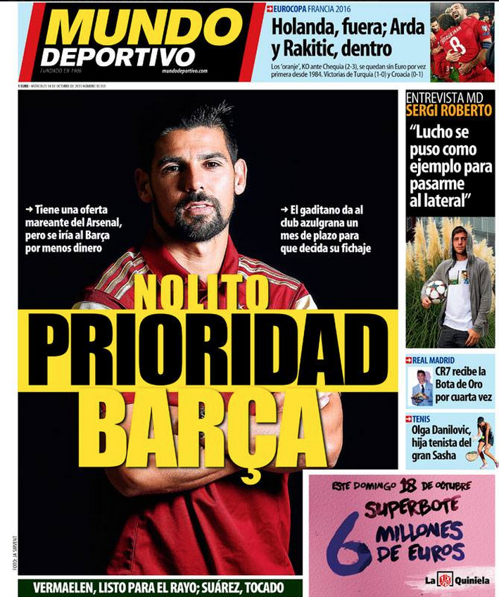 La prensa deportiva catalana cumplía su papel. Forzar al Celta y calentar la cabeza a Nolito. "Somos el Barça, cómo no vamos a poder llevarnos a un jugador del Celta..."