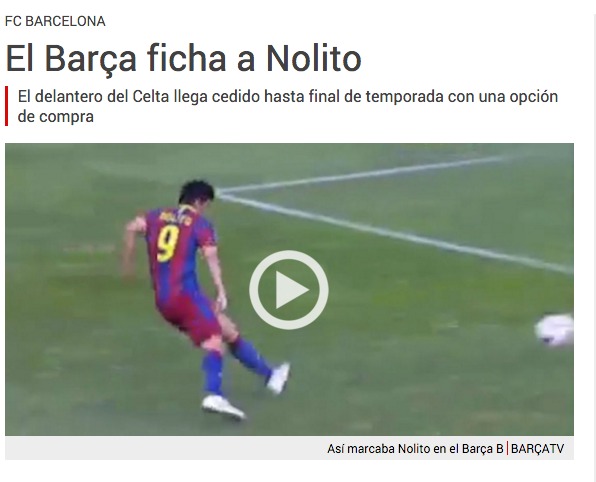 En su intento por presionar al conjunto olívico y al propio jugador para forzar su salida, la prensa catalana no tenía reparo en dar a Nolito como atado. El acuerdo entre Barça y Celta llegó a darse por hecho el día 13 de enero desde el diario Sport. La información corrió como la pólvora por las redes sociales, convirtiendo al jugador andaluz en trending topic mundial.