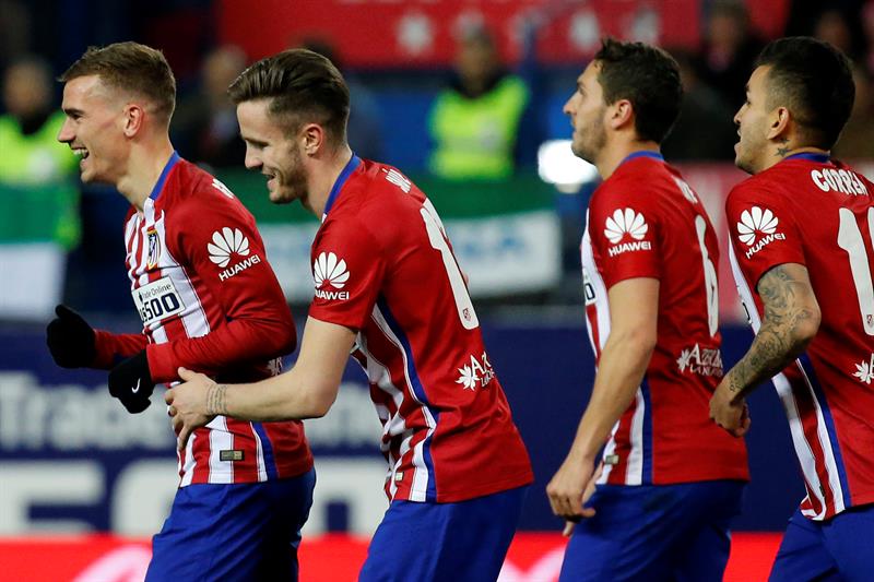 Atlético de Madrid, 3: Oblak; Juanfran, Giménez, Godín, Filipe; Koke, Gabi, Saúl, Carrasco (Óliver, m. 78); Griezmann (Kranevitter, m. 64) y Vietto (Correa, m. 57).