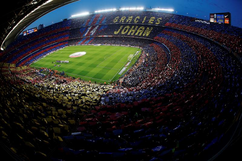 No faltó un mosaico de 90.000 cartulinas con un inmenso "Gràcies, Johan" ("Gracias, Johan") y una camiseta azulgrana con el dorsal 14 que ocupó uno de los laterales del estadio.