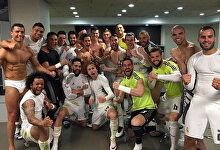El Madrid compartió con sus aficionados la alegría tras el triunfo en territorio rival.
