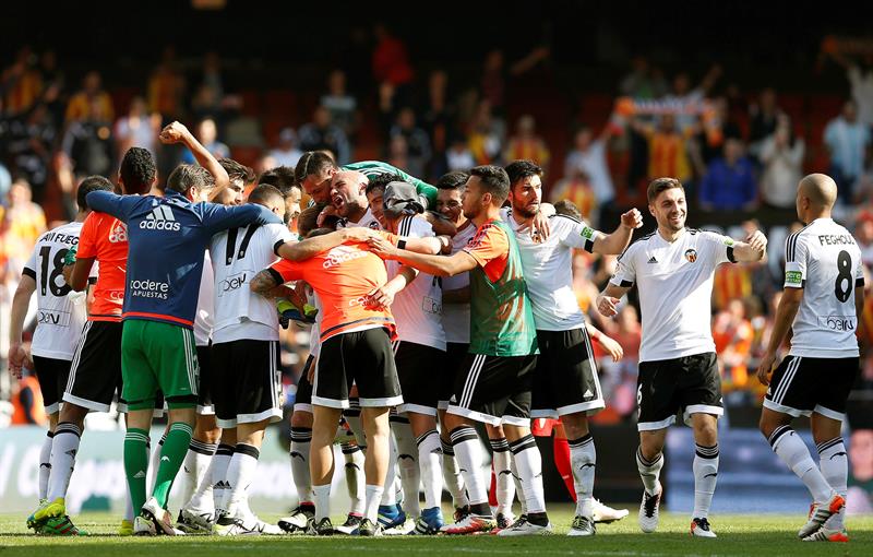 Valencia, 2: Diego Alves, Barragán, Mustafi, Abdennour, Siqueira, Javi Fuego, Parejo, André Gomes, Rodrigo (Enzo Pérez, m.65), Santi Mina (Feghouli, m.77) y Paco Alcácer (Negredo, m.86).