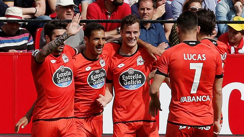 El Depor no pudo contar por lesión con el meta argentino Lux y a última hora con su compatriota Fede Cartabia; por sanción con el exsevillista Arribas; y por decisión técnica con Juan Domínguez y el uruguayo Jonathan Rodríguez, con lo que el técnico Víctor Sánchez del Amo apostó por el marroquí Fayçal Fajr y el luso Luisinho en los extremos, Luis Alberto -formado en el Sevilla- y Lucas Pérez arriba.