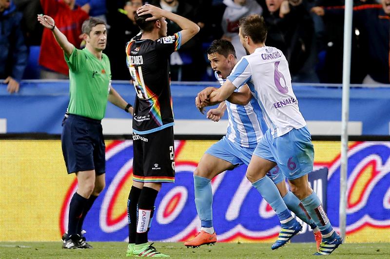 Málaga, 1: Ochoa; Rosales, Albentosa, Weligton, Ricca; Juanpi, Recio (Atsu, m. 71), Camacho, Chory Castro (Horta, m. 84); Cop (Santa Cruz, m. 84) y Charles