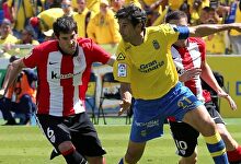 Valerón (d) disputa un balón con Mikel San José. | EFE