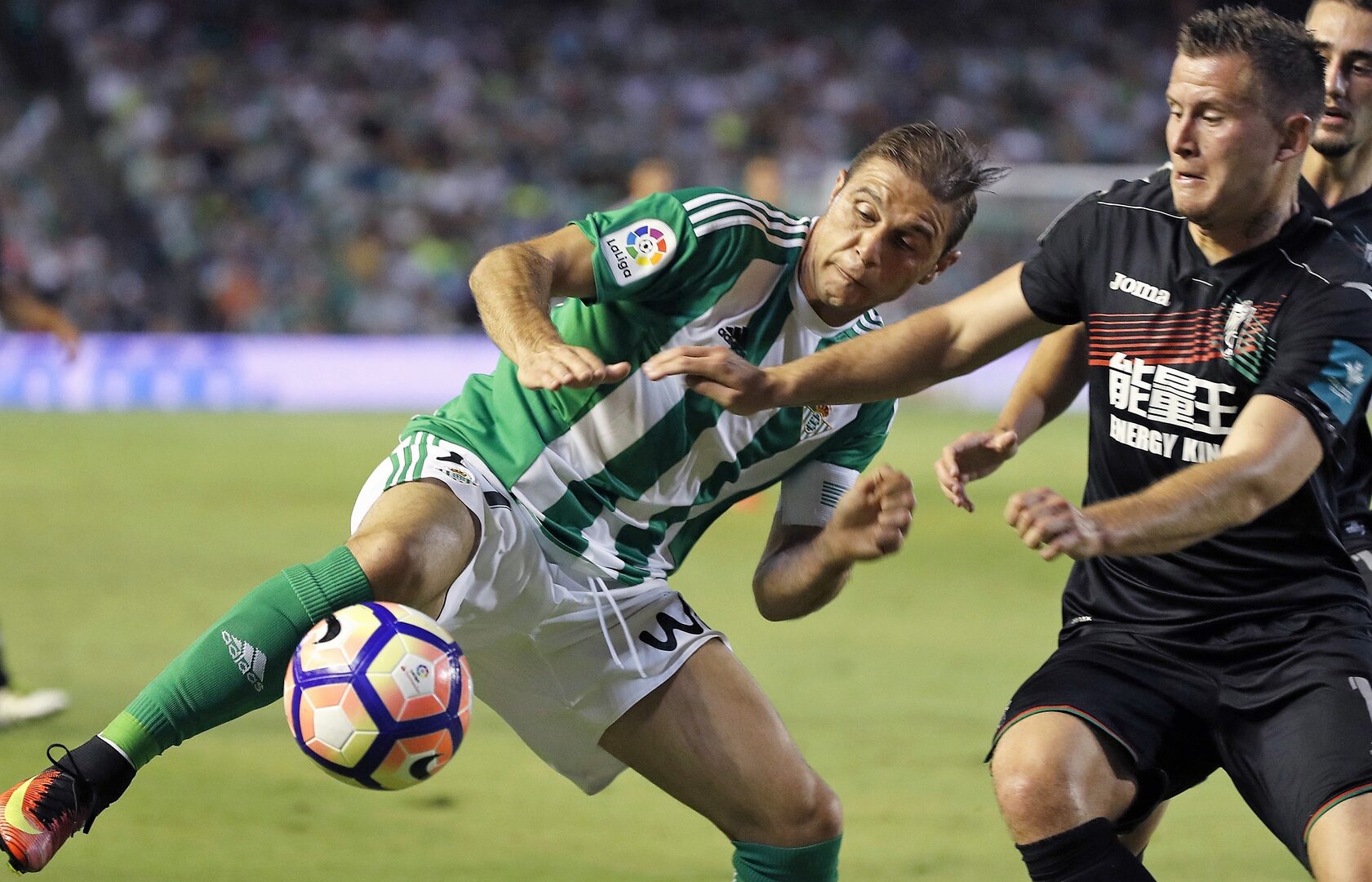 Salió el Betis enchufado desde el inicio, con la confianza que le dio la semana anterior su primera victoria del torneo y además ante el Valencia en Mestalla, donde no ganaba desde hacía treinta años. Los del técnico uruguayo Gustavo Poyet presionaron arriba y dificultaron la salida del Granada y con ello pusieron en algunos apuros al meta mexicano Guillermo Ochoa, sobre todo con incursiones por la banda izquierda del lateral danés Riza Durmisi.