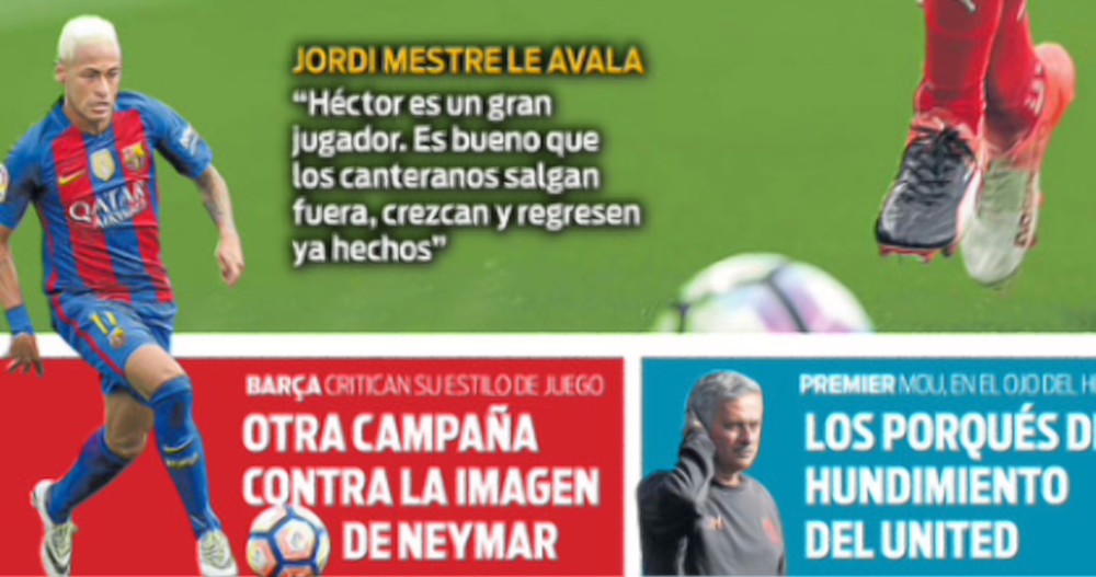 El diario Sport pone el grito en el cielo por lo que considera una campaña orquestada contra la imagen de Neymar y el Barcelona. El periódico catalán habla de persecución al jugador brasileño. Considera a Michael Laudrup, que atizó al 11 del Barça en la retransmisión del pasado sábado ante el Leganés, como el iniciador de un debate al que rápidamente se sumaron "la artillería mediática del entorno madridista".