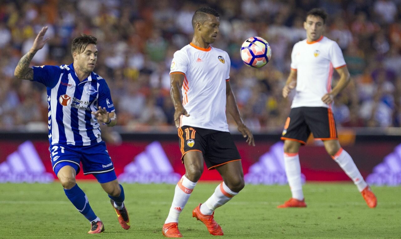 El Valencia ha ganado al Alavés por 2-1 con un tanto en propia meta del equipo vasco y un penalti a última hora, lo que ha supuesto el primer triunfo del equipo valenciano en la Liga y la primera derrota de los vitorianos en el campeonato. El Alavés fue mejor en la primera mitad pero, tras el descanso, el conjunto valenciano a base de empuje y casta no dio opciones a su rival y sumó unos puntos que le resultaban vitales.