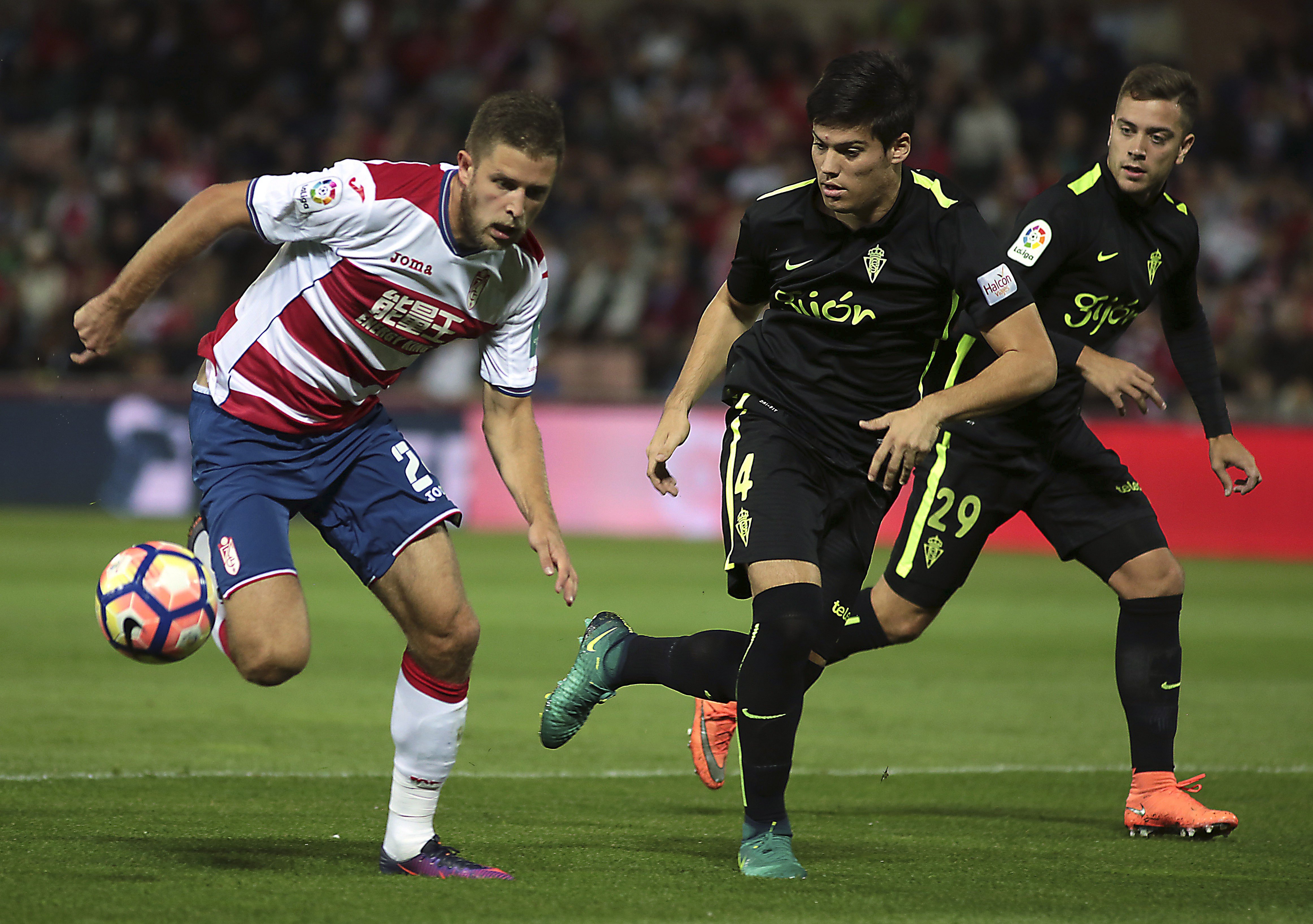 El equipo local llevó el peso del partido en la primera mitad, aunque se mostró demasiado inofensivo de mitad de campo hacia arriba ante un Sporting bien colocado en el terreno de juego y que arriba se agarró a lo que pudiera inventar Jorge Franco 'Burgui', su mejor futbolista en Granada.