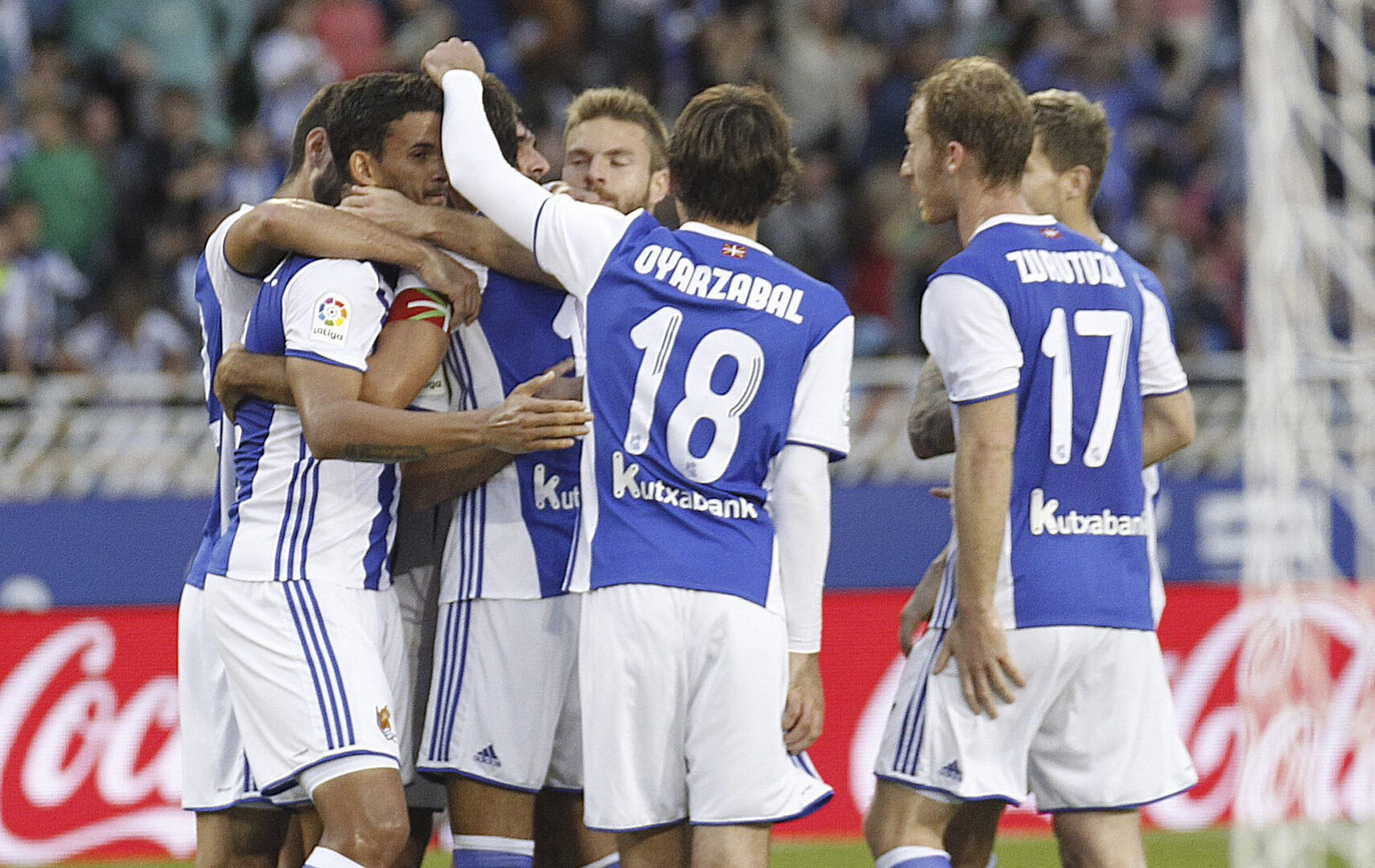 Real Sociedad, 3: Rulli; Carlos Martínez, Navas, Iñigo Martínez, Yuri; Illarramendi, Zurutuza, Prieto (Canales, min 68); Vela, Oyarzabal (Rubén Pardo, min. 88)y Willian José (Juanmi, min. 81).