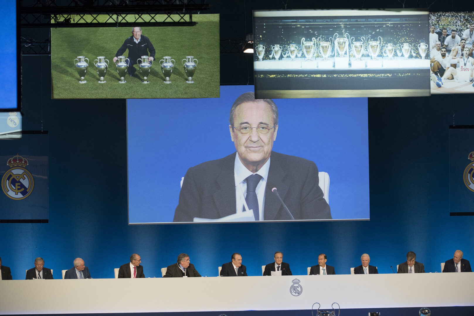 El presidente del Real Madrid, Florentino Pérez, se mostró orgulloso en su discurso en la Asamblea General Ordinaria, por la solidez económica y el sueño de la ejecución del proyecto del nuevo Santiago Bernabéu, que responde al deseo continuo de superación, el "espíritu de alcanzar lo imposible".