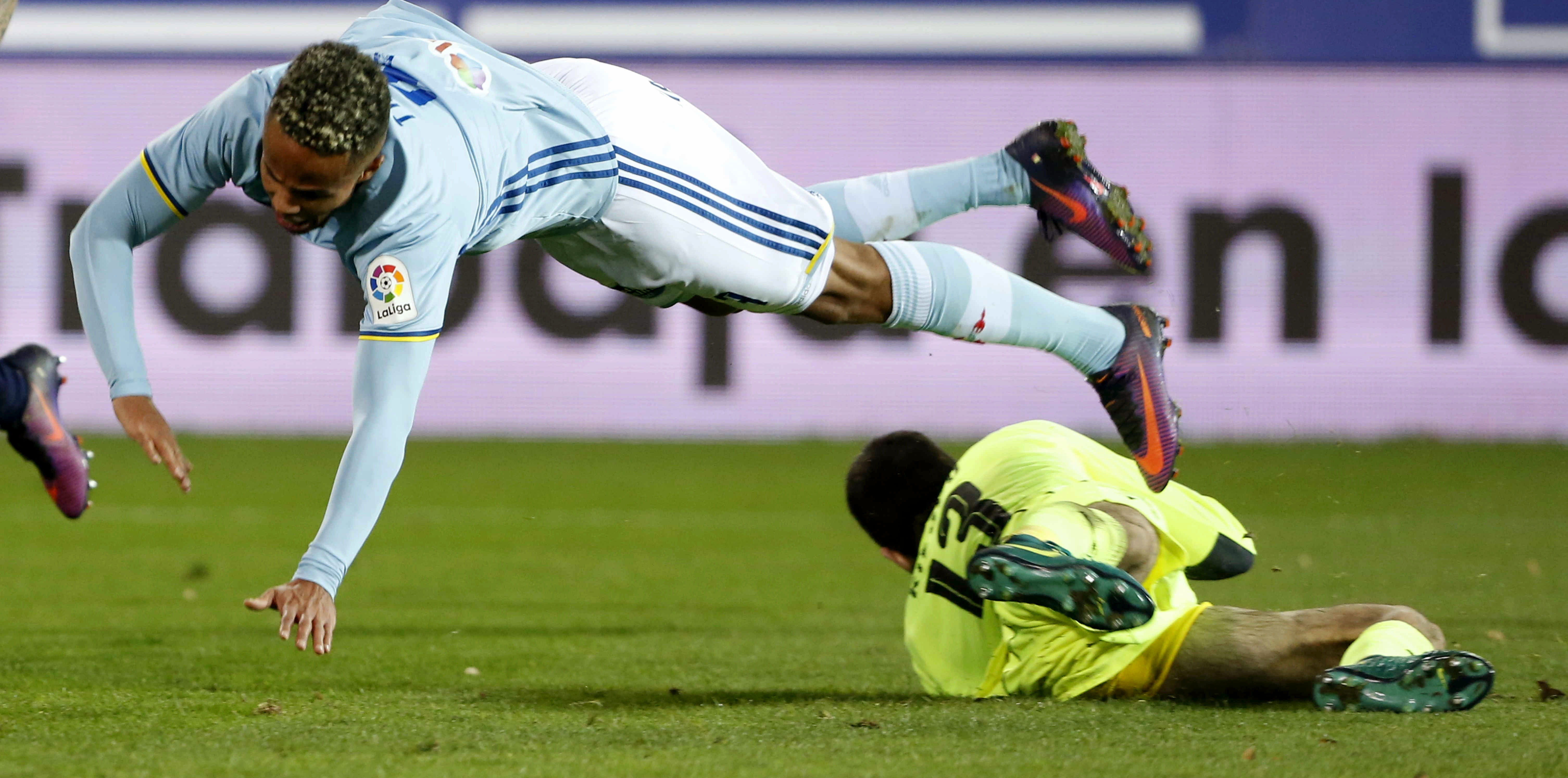 El capitán visitante, Hugo Mallo, quien comenzó como mediocentro, aunque fortaleciendo la zaga viguesa como tercer central cuando el Celta se replegaba para defender, luego cambió de posición y comenzó a jugar de lateral derecho en una defensa con tres centrales, Roncaglia (empezó por la derecha), Sergi Gómez y Fontás.