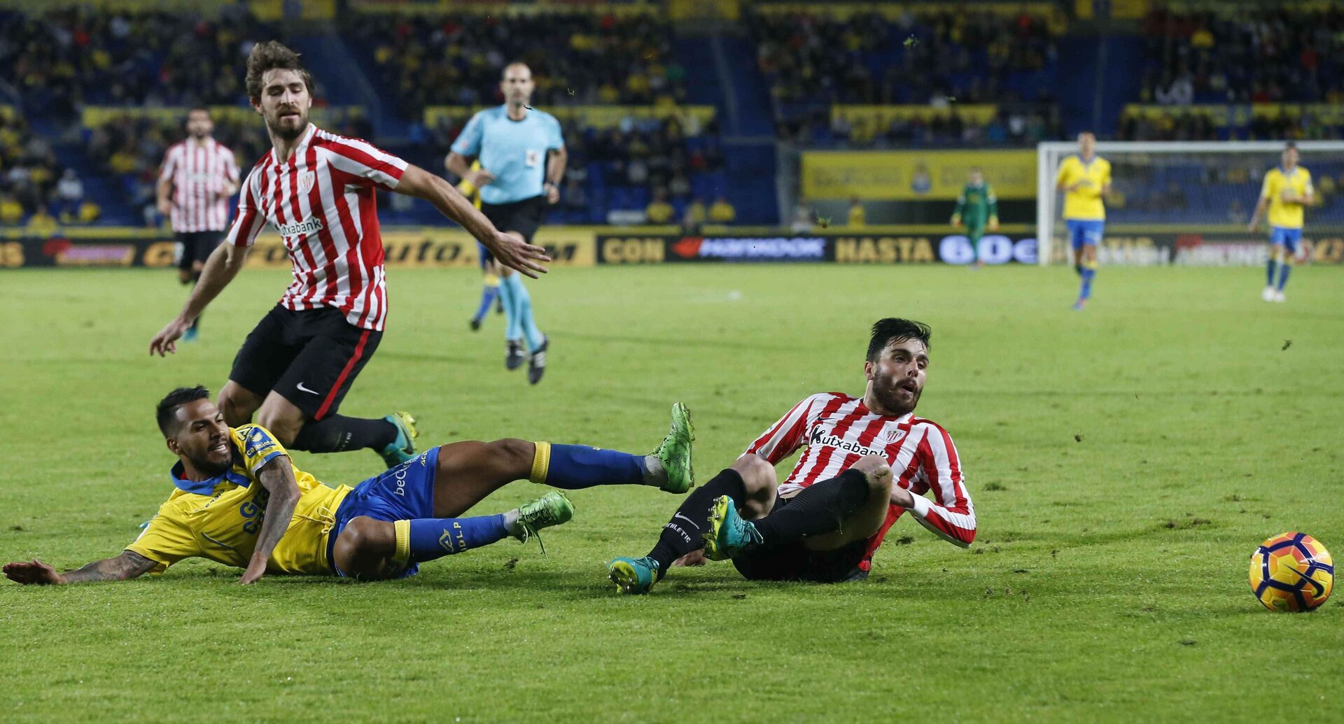 La Unión Deportiva Las Palmas impuso su estilo de fútbol ante un Athletic Club poco reconocible, que acabó certificando una noche nefasta en la que, de forma inverosímil, creó más peligro cuando perdió a su delantero centro Aritz Aduriz, expulsado en la segunda parte.