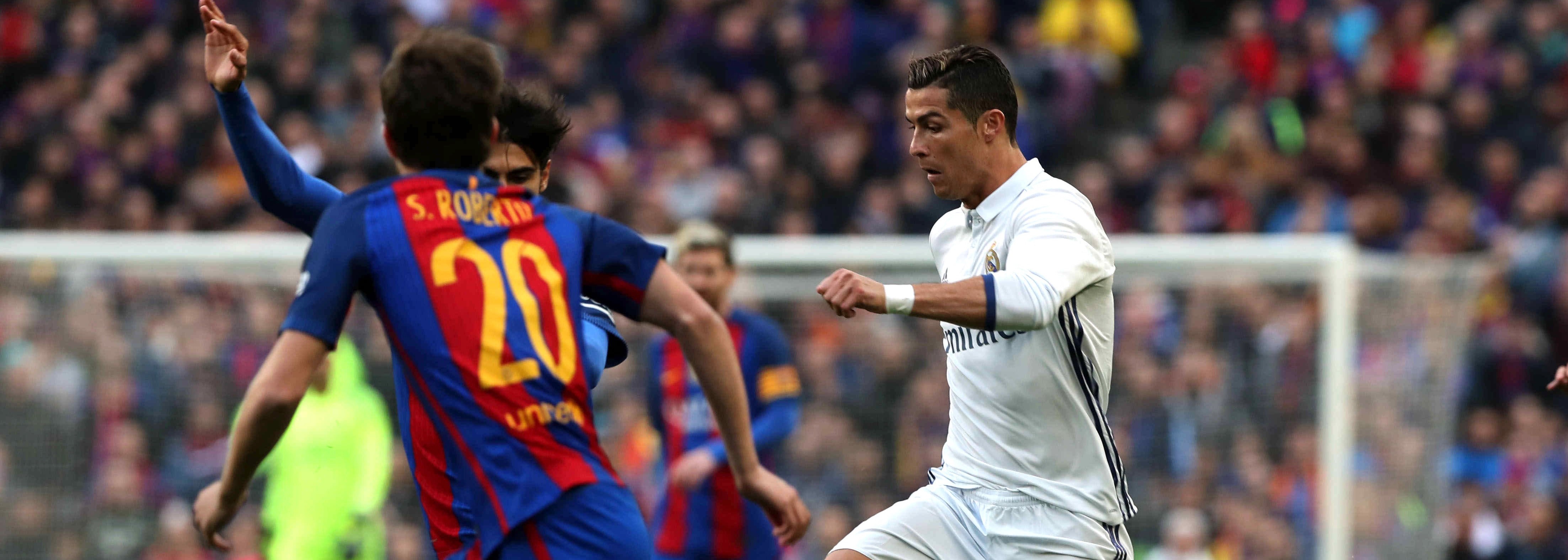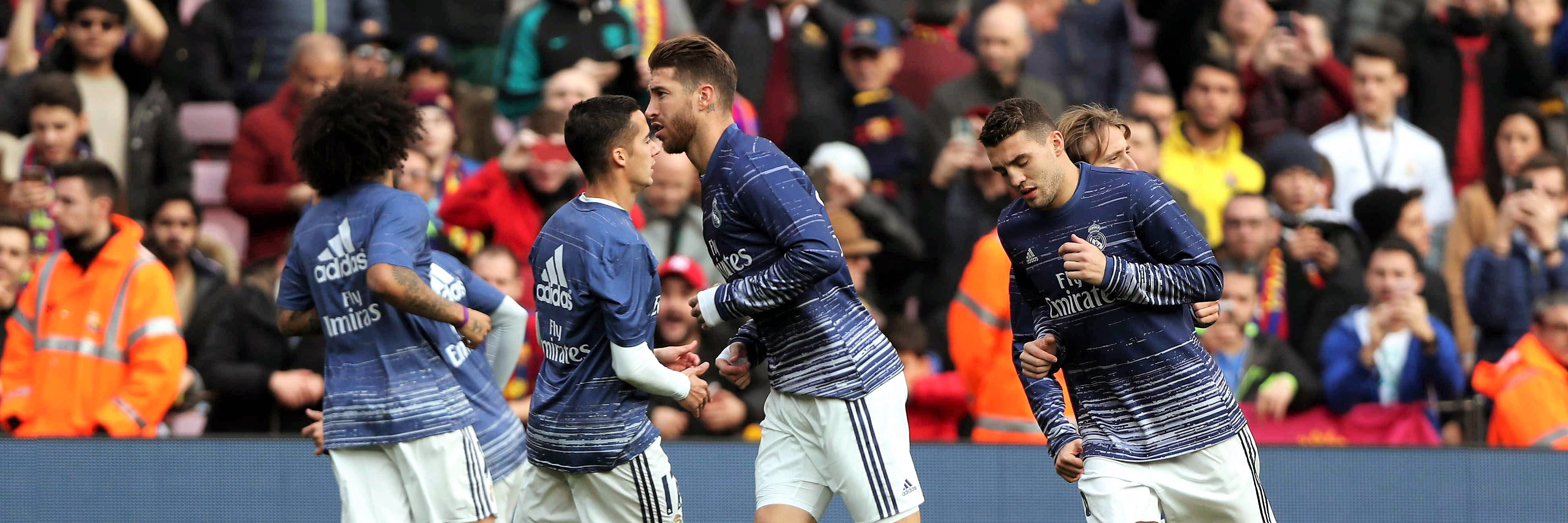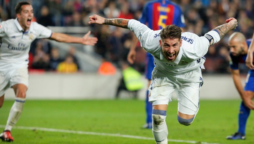 Sergio Ramos celebra su gol al Barcelona en el minuto 90.