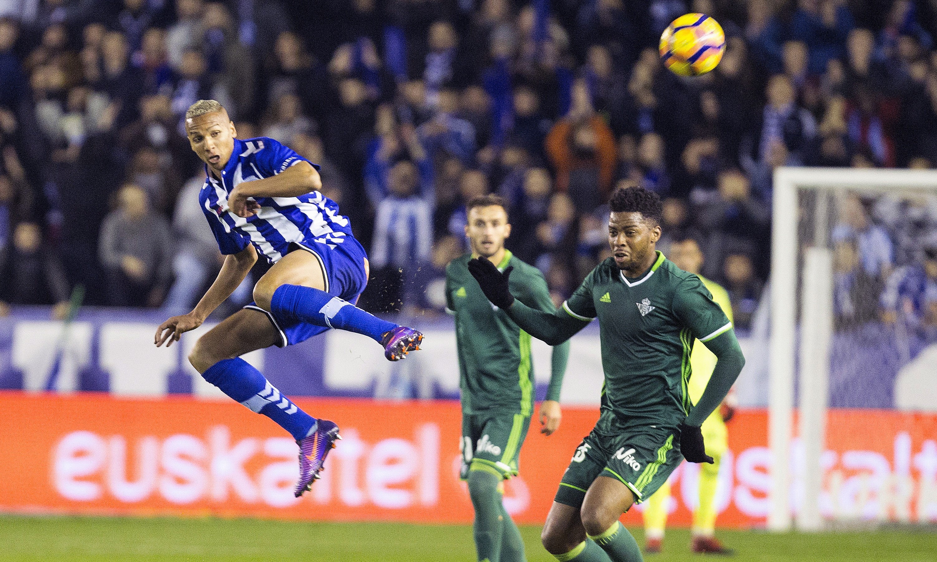 Los de Mauricio Pellegrino llevaron el peso del encuentro en el primer tiempo, con llegadas por banda de Ibai y Toquero buscando al goleador de la noche. El Betis fue quien dejó al descubierto sus problemas para crear, sin pisar el área rival y lamentando además la lesión de Joaquín a los 40 minutos. El gaditano salió del campo aplaudido por la parroquia vitoriana. En ese tramo final Deyverson perdonó en posición acrobática y el Betis pidió penalti a Ceballos de Laguardia, en la primera presencia en área rival.