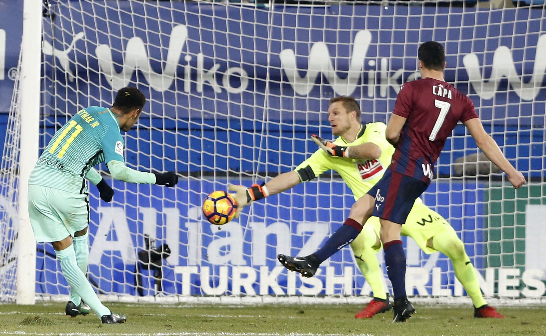 Los eibarreses, que comenzaron a dominar el centro del campo aprovechando la ausencia de Busquets e Iniesta (el manchego no viajó a Guipúzcoa al estar lesionado), respondieron con dos disparos lejanos, uno de Escalante que paró Ter Stegen, y otro del japonés Inui que se fue desviao.