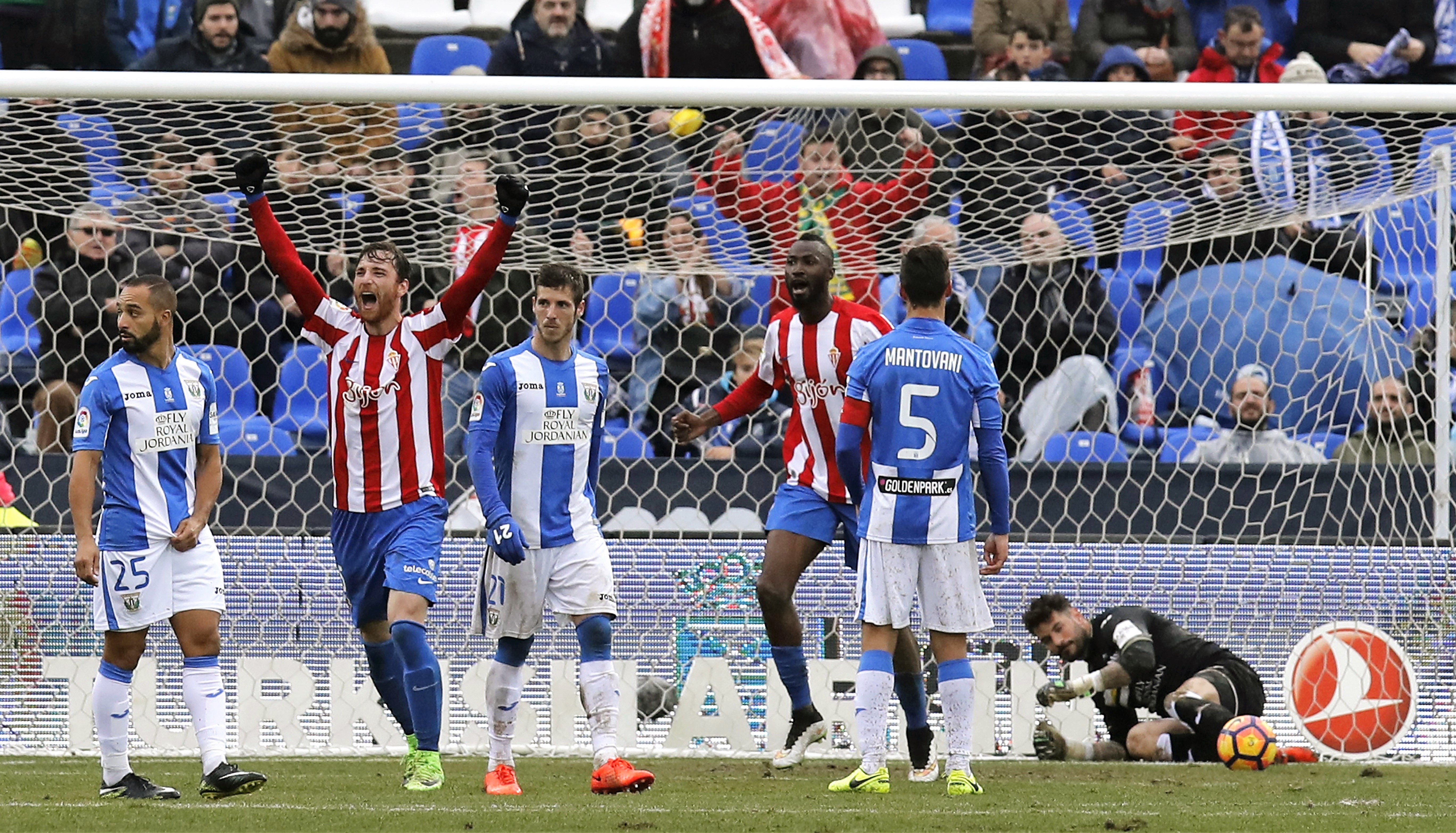 El Sporting de Gijón ha vuelto a meterse de lleno en la lucha por la permanencia al lograr la primera victoria (0-2) de la era Rubi ante un Leganés del que ahora sólo le separan dos puntos en la tabla.
