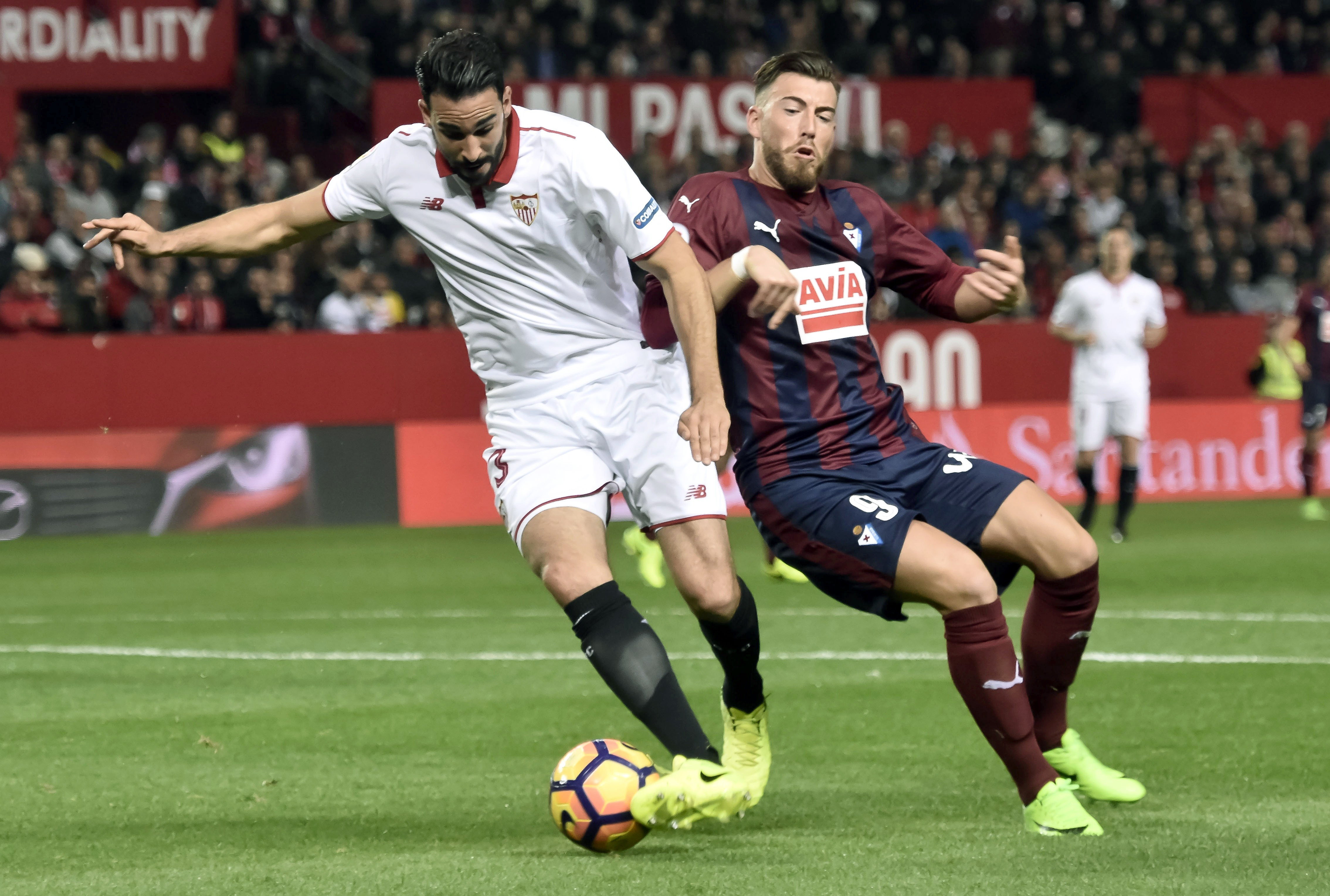 El equipo andaluz, que encontró la tranquilidad en la prolongación con un gol de Vitolo, afrontó la primera cita de tres muy seguidas y todas ellas trascendentes, pues la visita del conjunto eibarrés era una dura prueba ante un rival que es la revelación del campeonato y después el miércoles recibe al Leicester inglés en los octavos de la Liga de Campeones para rematar el sábado en el Benito Villamarín ante el Betis en el derbi hispalense.