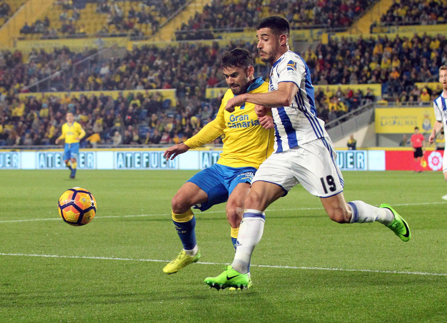 La Real sufrió, no estuvo tan cómoda en el campo, pero cuando Las Palmas estaba siendo mejor, Javi Varas cometió un grave error en un pase que buscaba a Roque Mesa, regalándole el balón a Xabi Prieto, que lo impulsó a la red desde la media luna con el guardameta desplazado. Es el peaje que hay que pagar en el estilo Setién.