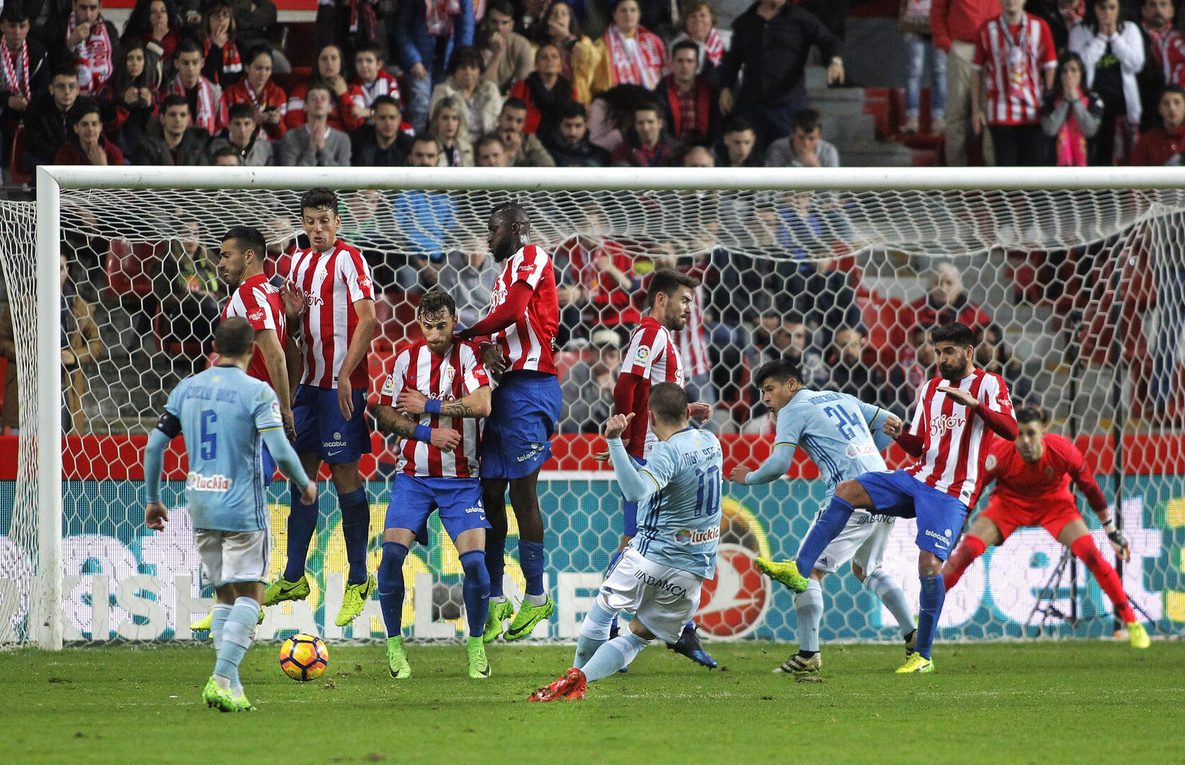 Con el marcador en contra, Berizzo decidió dar más potencial ofensivo a su equipo y metió en el campo a Iago Aspas por Jozabed, pero el Sporting siguió luchando por cada balón en el centro del campo y acercándose con peligro. Traoré remató de cabeza a un poste un centro de Moi Gómez.