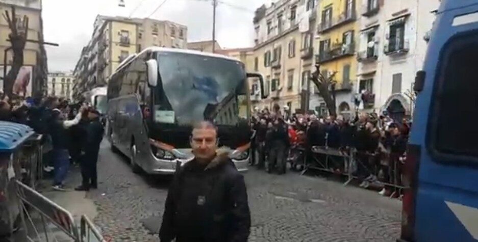 La mayoría de los aficionados eran seguidores del conjunto napolitano, que pese a las medidas policiales, colapsaron la zona alrededor del hotel donde se aloja el Real Madrid, haciendo complicada la llegada del autobús de los jugadores.
