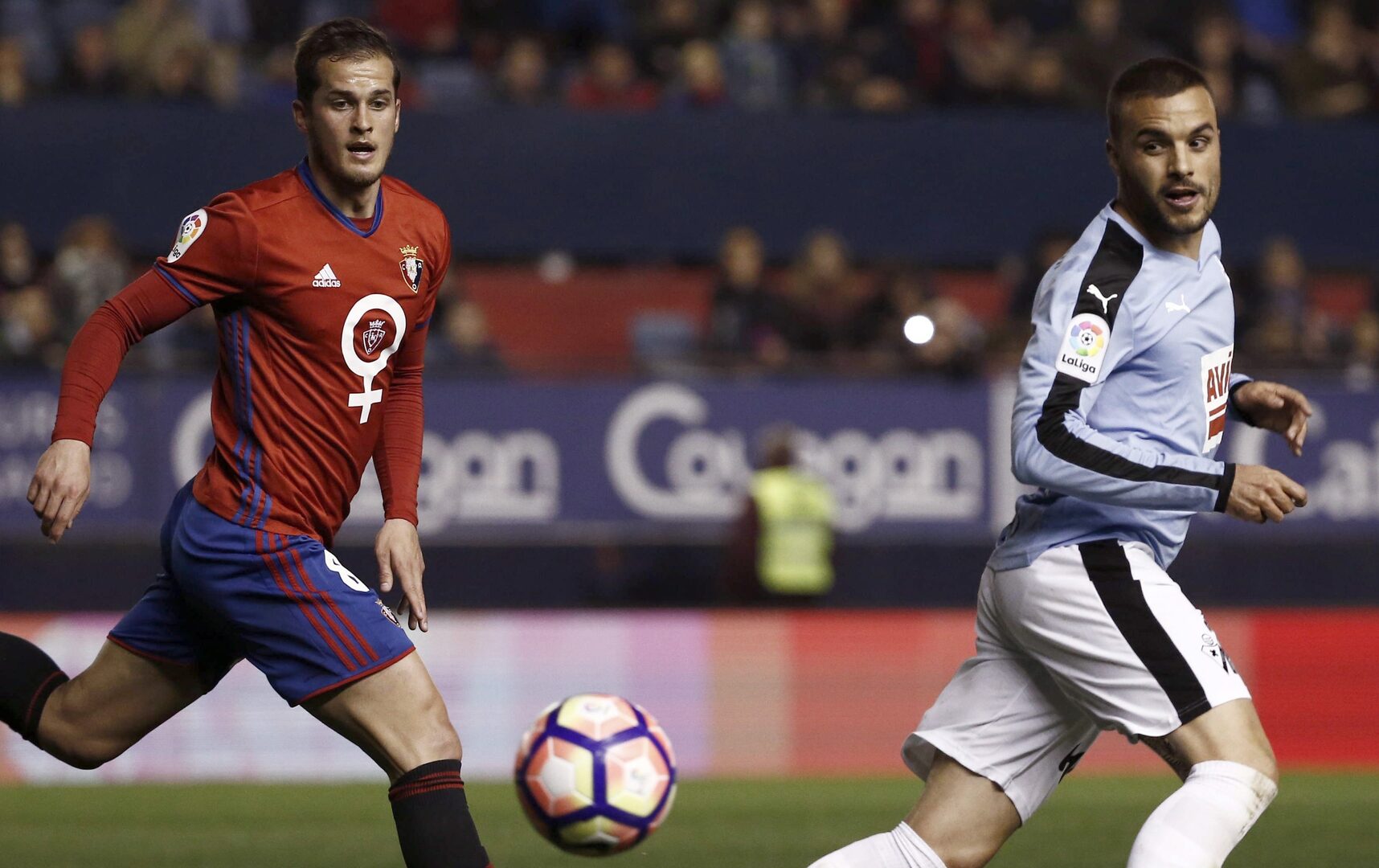 El equipo de José Luis Mendilibar, que siguió el partido desde una cabina de prensa al estar sancionado, encontró huecos en la endeble defensa local por ambas bandas. Sirigu, que había encajado muchos goles desde su llegada a Osasuna en el mercado invernal, siguió muy seguro bajo palos y volvió a salvar al equipo rojillo con dos grandes paradas en remates de Enrich e Inui, al japonés por partida doble.